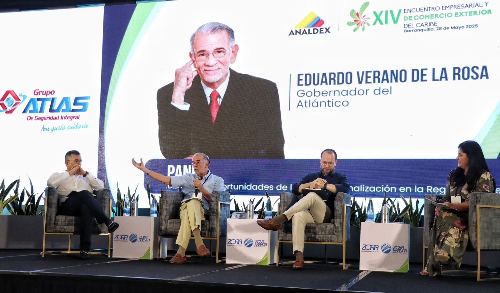 El departamento del Atlántico ya no solo se piensa para Colombia, sino para el mundo. Así lo expresó este miércoles el gobernador Eduardo Verano durante su participación en el panel “Desafíos y oportunidades de la internacionalización en la región Caribe”, en el marco del XIV Encuentro Empresarial y de Comercio Exterior del Caribe, organizado por Analdex en el hotel Marriott de Barranquilla.