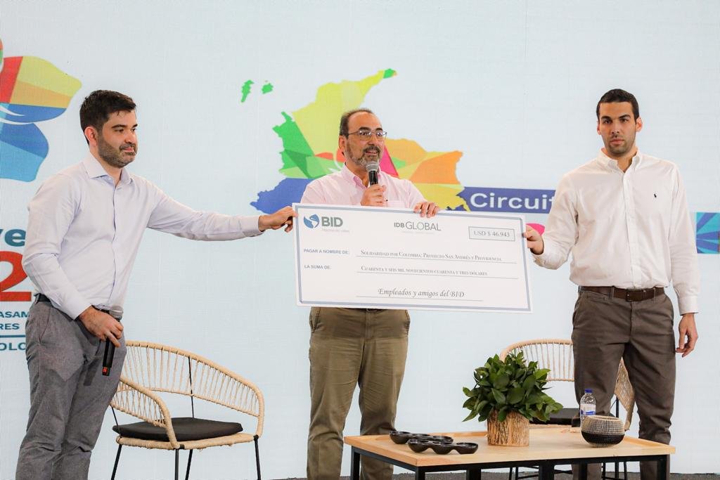 Durante el evento, el director ejecutivo del BID por Colombia y Perú, Sergio Díaz-Granados, en nombre de empleados y amigos del BID, entregó un cheque por cerca 47.000 dólares para financiar proyectos relacionados con la reconstrucción de las islas de San Andrés y Providencia, afectadas por el huracán Iota en noviembre pasado.