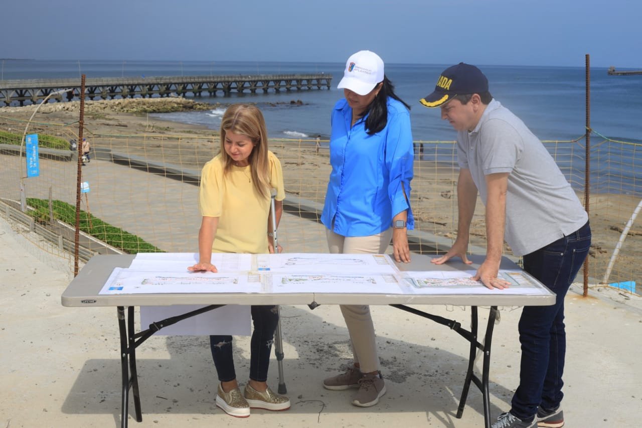 La gobernadora del Atlántico, Elsa Noguera, visitó la obra del Centro Gastronómico Internacional, que forma parte del Malecón del Mar ejecutado por la Gobernación en Puerto Colombia, para hacer seguimiento a la construcción y anunció que esta infraestructura estará lista a final de año.