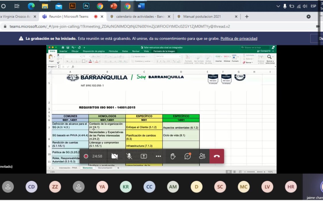 Con miras a la integración de los sistemas de Gestión de la Calidad y Gestión Ambiental, la Gerencia de Control Interno de Gestión tuvo a su cargo la coordinación de la capacitación ‘Sistemas Integrados de Gestión´ dirigida al equipo de agentes de cambio de nuestra institución.