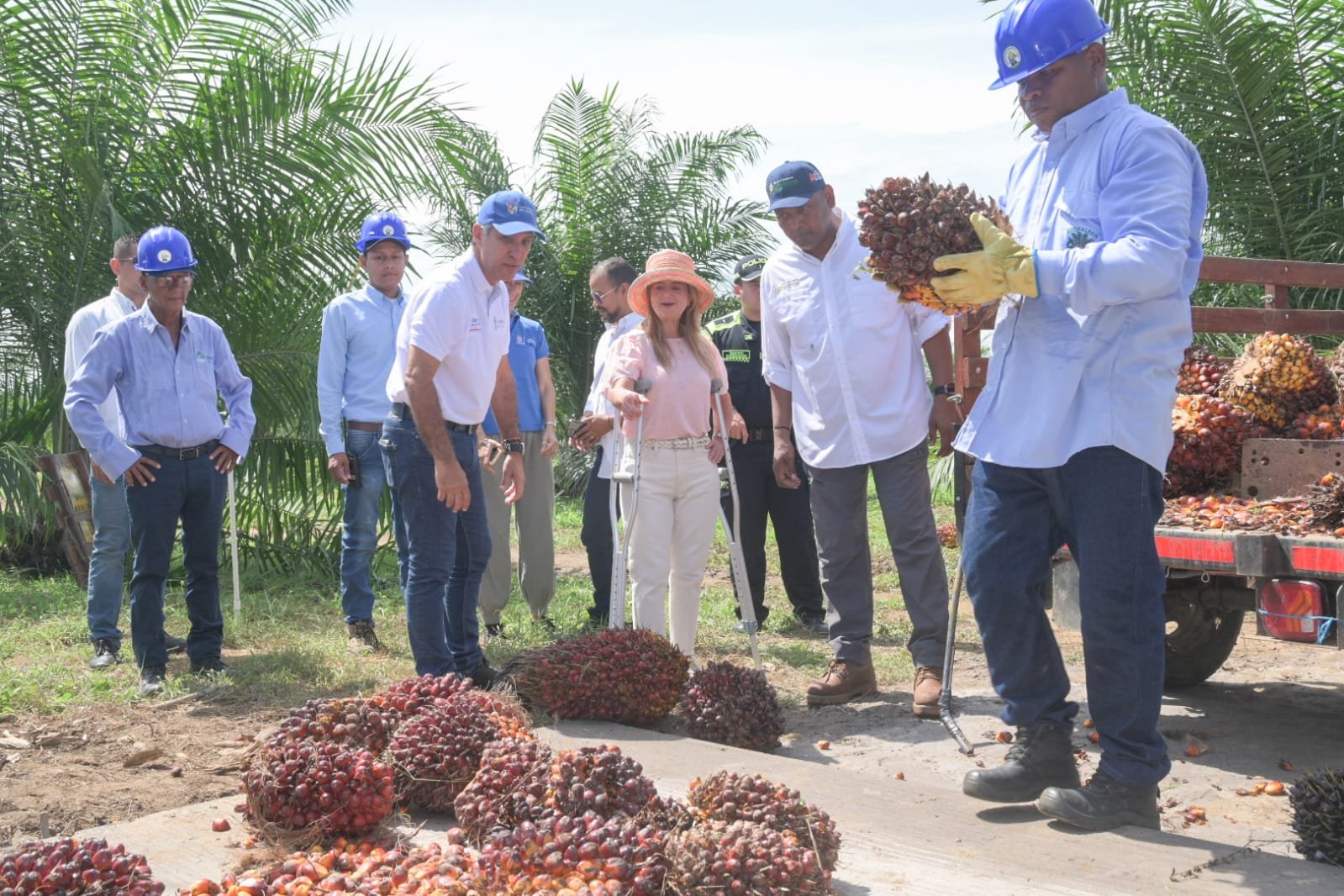 La gobernadora del Atlántico, Elsa Noguera, acompañó este lunes al primer productor que se vinculó al proyecto de agroindustria con la siembra de palma de aceite en Repelón, Manuel Pernett, a recoger su primera cosecha. Durante la visita, el productor le mostró emocionado a la mandataria el cultivo de 9,4 hectáreas de tierra, donde sembró 1.125 palmas que hoy representan 500 kilogramos en este primer corte.
